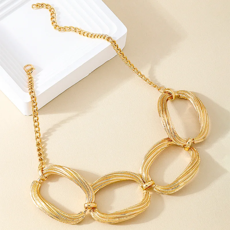 KMVEXO Punk Gold Color Hollow Geometric Choker Necklace Torques Bracelet Set For Women Men Collar Necklace African Jewelry Sets
